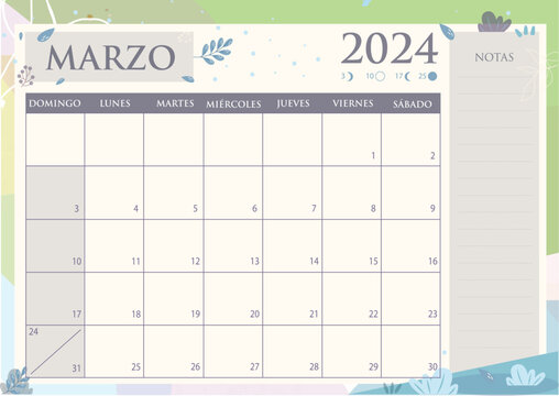 Calendario marzo de 2024 para imprimir